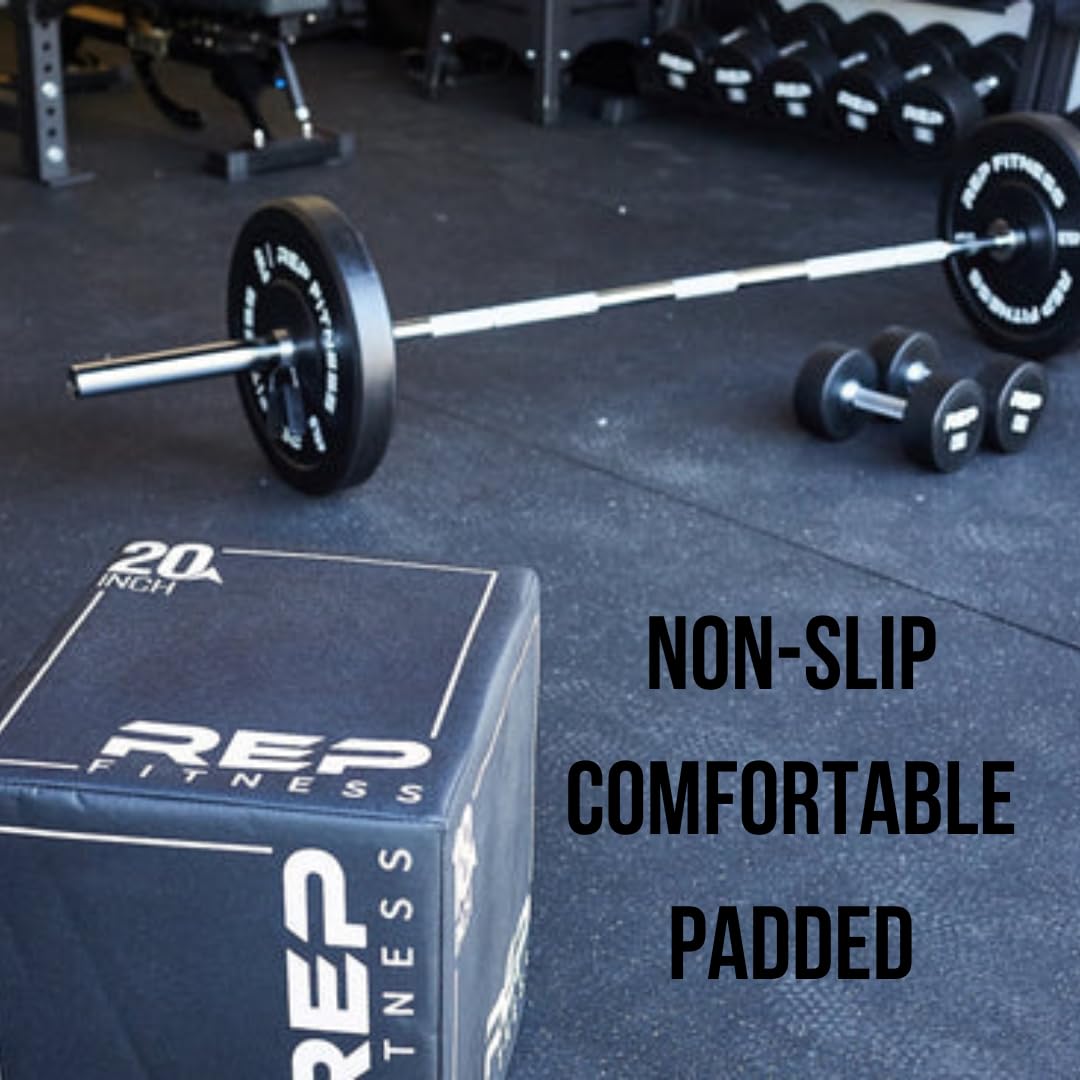 REP Fitness Interlocking Foam Tiles, Set of 4, 3/4" Thickness, Rubber Surface, Home Workout Base, Shock Absorbent Padding, Puzzle Design, 24" Squares, Exercise Equipment Platform, Training Room Floor